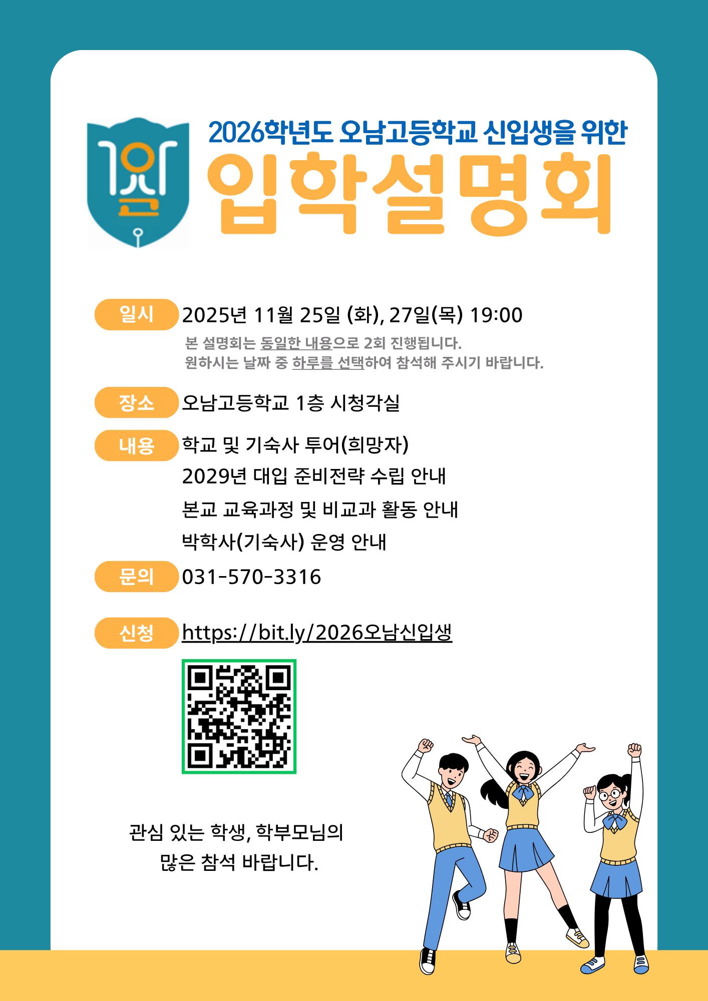 2026학년도 오남고등학교 신입생을 위한 입학설명회 안내